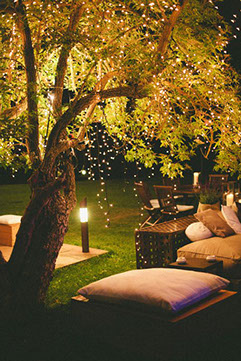 Can Riera ofrece múltiples opciones para realizar el baile y montaje del chill out: delante ó dentro del salón, el jardín, dentro de la ermita...