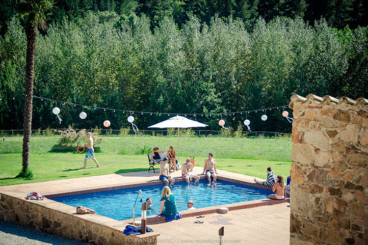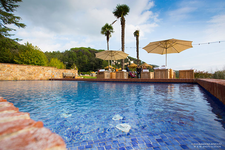 Tiene una superficie de12m. de largo por 5m. de ancho y una profundidad máxima de 1,70m. Rodeada de un perímetro enlosado de “tova catalana” que se funde en el jardín, és el complemento perfecto para servir el aperitivo, así como montajes de chill out o el baile. También ofrece